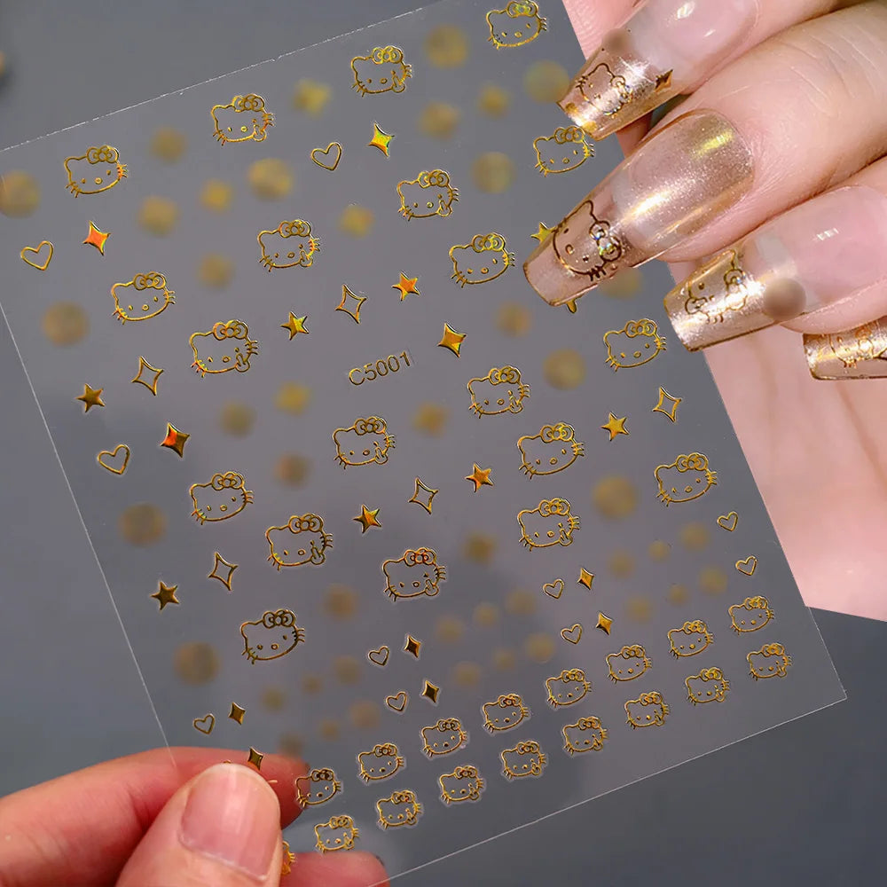 3D Cartoon Hello Kitty Nail Art Stickers – Laser Decals for Perfect Manicures